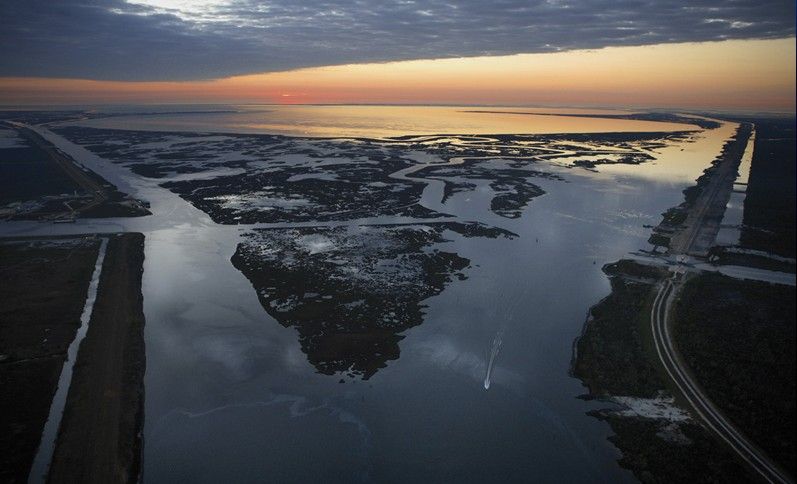 密西西比河三角洲,美國。洶涌澎湃的密西西比河穿過了遍布支流、沼澤和低洼沙洲島的廣闊亞熱帶地區,由北向南注入了墨西哥灣。在密西西比三角洲的邊緣,尚德盧爾群島為人口眾多的路易斯安那州沿海地區構筑了一塊天然的緩沖區,它保護了包括新奧爾良在內的很多城市免受日益嚴重的海浪打擊。