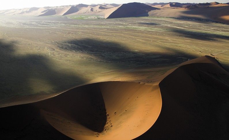 納米比亞Nakuluft公園。納米布沙漠是世界最大的移動沙丘所在地,高近千英尺。它們以每年超過60英尺的速度向內地遷移,融入了熱帶稀樹大原的豐富草地和零星的樹。更頻繁的干旱有可能威脅到當地獨特的野生物。