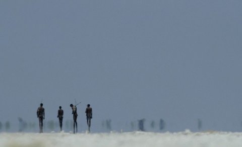 納米比亞喀拉哈里沙漠。在南非喀拉哈里沙漠惡劣的氣候條件下,San人總是在遷徙,尋找野生水果、漿果和堅果,追隨水源和狩獵。人口曾經達到數百萬的San人,只有不到兩千人仍以傳統的狩獵和采摘為生。他們的古老灌叢林地正受到牧場主和干旱的威脅。