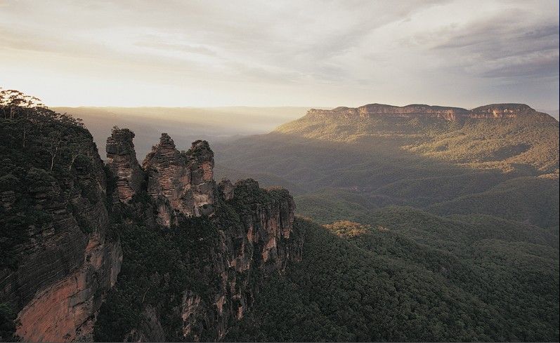 澳大利亞,大藍山地自然保護區。這里生長著超過100種的桉屬植物。它們通過向空氣中釋放一種油類物質使得空氣中形成一種特殊的薄霧來調節氣溫。但這些植物釋放的油類極易燃燒,往往引發森林大火,這也是自然界所不可避免的。但是越來越多的森林大火很可能會威脅到這里的珍惜物種。