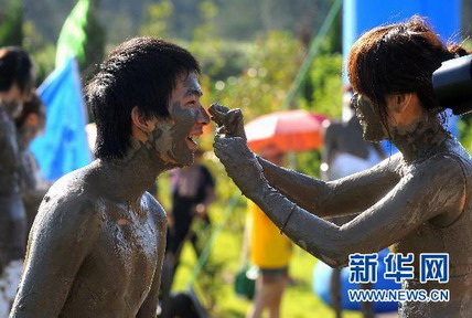19日,浙江省岱山縣秀山島在200多畝的天然海泥公園內(nèi)舉辦一場夏日“海泥狂歡節(jié)”。來自全國各地的游客和當?shù)鼐用窠藚⒓恿诉@場夏日海泥狂歡。大家在泥地里摸爬滾打,參加泥中競技,在炎炎夏日里享受海島泥趣。