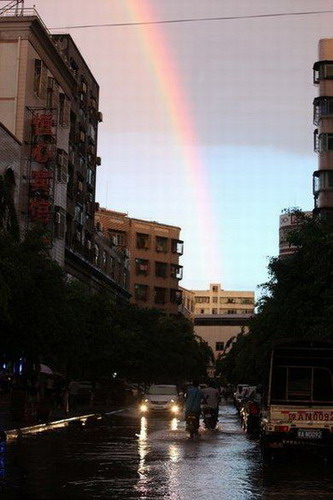 2010年7月19日,當日是今年農歷24節氣中進入三伏天氣的第一天,這意味著一年中氣溫最高最為潮悶的時期到了。然而,頭伏天里一場暴雨卻給?诘氖忻駛儙淼年囮嚨臎鏊。雨后的天空更是雙虹高掛,美輪美奐。
