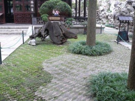 更有意思的是,東園牡丹廳是一座船廳,廳下以鵝卵石和小瓦片鋪成波浪紋,起伏有致,船廳的楹聯(lián)“月作主人梅作客,花為四壁船為家”,更有畫龍點(diǎn)睛的效果,令人不得不佩服設(shè)計(jì)者的巧思與創(chuàng)意。