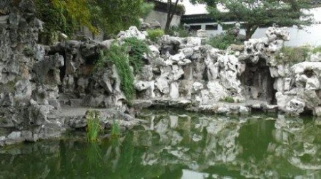 水的安排更具巧思,何園是一座旱園,“旱園水作”通常都是挖一座水塘,點(diǎn)綴些山石而已。而何園設(shè)計(jì)者從一開始就另辟蹊徑,在進(jìn)園處貼壁山林前,是一灣曲水,池旁湖石或如峭壁凌空,石磯俯瞰,池內(nèi)游魚怡然,山色樓臺(tái)倒映水面,靈動(dòng)自然。