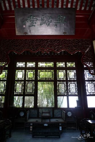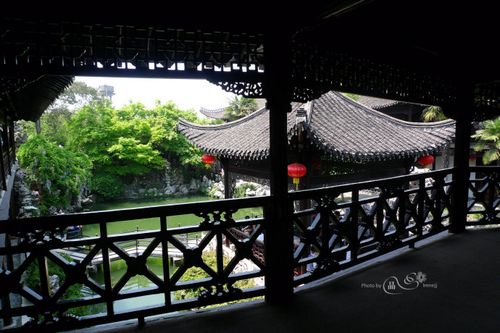 玉繡樓前種著大大的玉蘭和繡球,都是當年留下來的,現(xiàn)在繡球開的正當時,淡淡的綠色,顯得淡雅干凈,回想這幾天所見的繡球都是這種淡綠色,并沒有別的顏色,我想這樣可能最適合江南吧。西園以水池居中,池中央是座水中戲亭,可巧妙地運用水面和走廊的回聲,起到增強音響共鳴的效果。