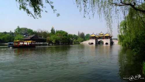 杭州有西湖,揚州有瘦西湖,鎮江有金山,揚州就有小金山。小金山是瘦西湖中最大的島嶼,也是湖上建筑最密集的地方?茨戏降目撮T獅子,不似北方的莊重威嚴,很是俏皮可愛。深入湖心的釣魚臺,原來是演奏絲樂器的地方,相傳當年的乾隆皇帝曾來此釣魚。這是個挺有特色的亭子,造型超贊,三個孔洞的“框景”設計是很有名的。