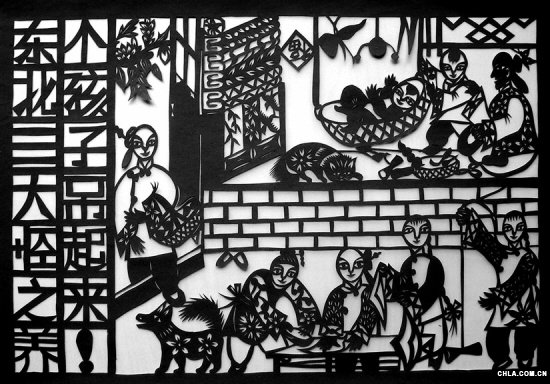 初春枝說,“這種剪紙不是簡單地剪個貓,剪個狗,而是有主題的,大多以風俗畫的形式記錄滿族古老的文化傳統和民間禮俗”。