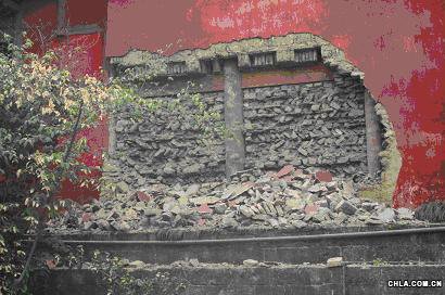 20、成都鐵像寺:瓦片脫落,圍墻倒塌。