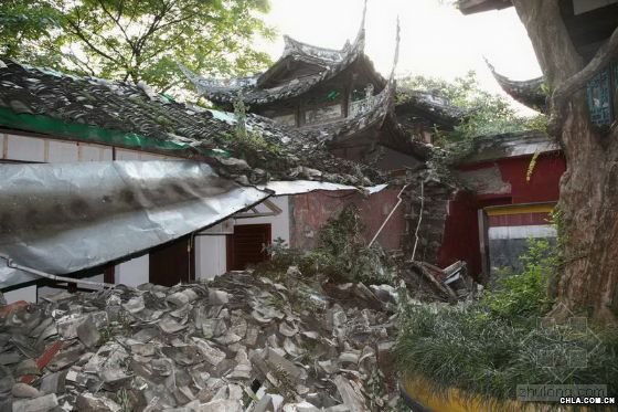 伏龍觀震后的景象