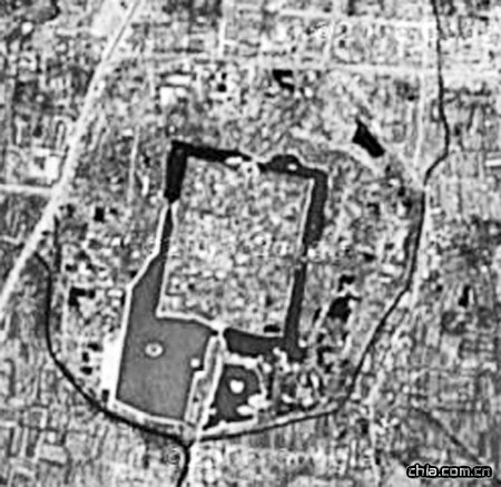 商丘古城遺址衛星圖顯示“外圓內方”,近似世遺標志。