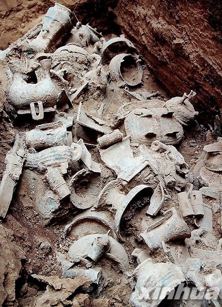 殷墟遺址的一處發(fā)掘現(xiàn)場(chǎng)(資料照片)