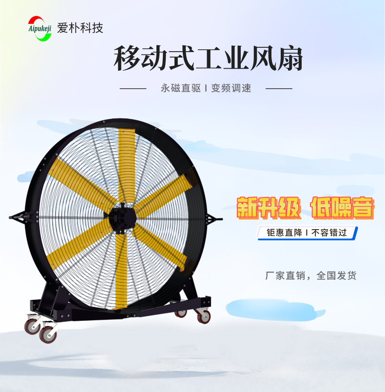 風(fēng)源系列移動(dòng)風(fēng)扇直徑1.2m(5ft),可應(yīng)用于工業(yè)廠(chǎng)房、車(chē)間流水線(xiàn)、物流倉(cāng)儲(chǔ)、健身房、體育館、籃球館等諸多場(chǎng)所。整機(jī)專(zhuān)利設(shè)計(jì),采用最新研發(fā)機(jī)翼型扇葉,輸出大而穩(wěn)定的風(fēng)量。輕便靈活移動(dòng),可隨時(shí)隨地為您提供完美的通風(fēng)降溫服務(wù)。