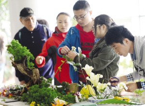 近日,愛(ài)好插花的幾名學(xué)生在金陵科技學(xué)院老師的帶領(lǐng)下,在中山植物園南園的菊花展上秀出了自己的絕活。同學(xué)們個(gè)個(gè)都是能工巧匠,數(shù)十種花卉以及枝葉秀出的盆景,立刻被游客團(tuán)團(tuán)圍住,賺足了眼球。