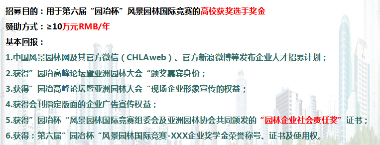 園冶杯大學生國際競賽是一項國際化得公益性的競賽活動,需要社會各界的廣泛關注和大力支持。歡迎社會團體、企業設計獎學金、成長基金等,共同促進人才培養,推動行業繁榮和發展。