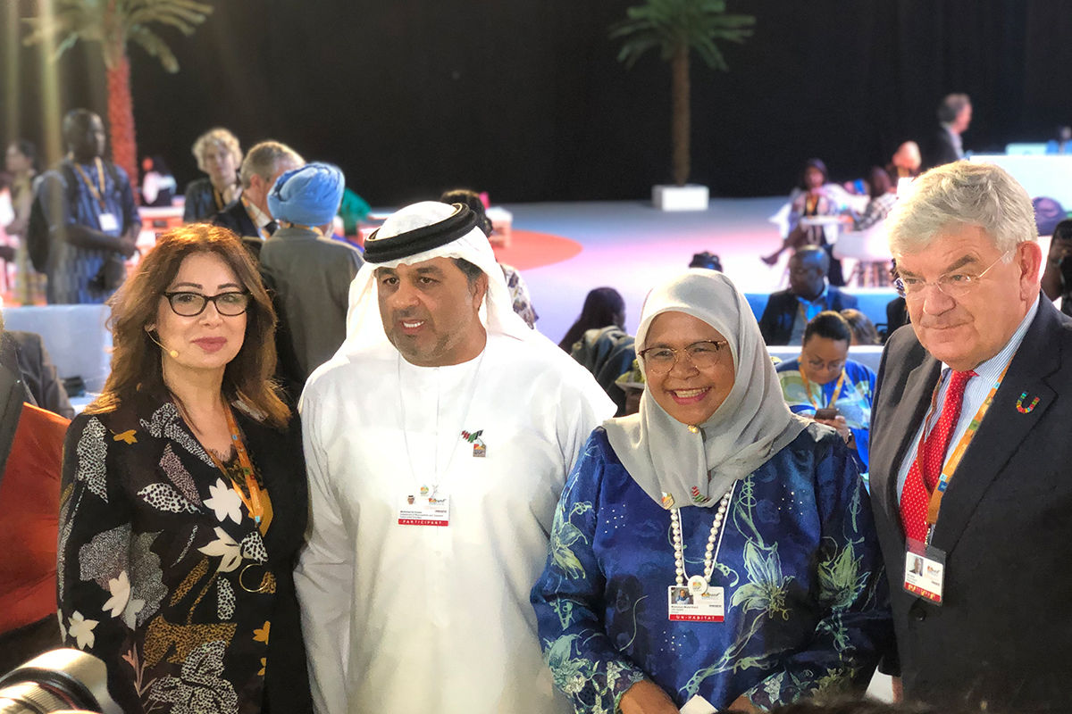 聯(lián)合國(guó)副秘書(shū)長(zhǎng)、聯(lián)合國(guó)人居署執(zhí)行主任麥慕娜·莫哈德·謝里夫(右二)在論壇開(kāi)幕現(xiàn)場(chǎng)
