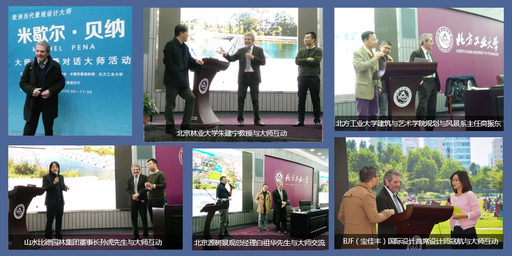 11月10日,由園冶杯國際競賽組委會、中國風(fēng)景園林網(wǎng)和北方工業(yè)大學(xué)主辦的歐洲當(dāng)代景觀設(shè)計大師米歇爾·貝納專題講座暨對話大師活動在北方工業(yè)大學(xué)成功舉辦。來自全國各地的400多位專業(yè)人士參加了此次大會。萬科、華潤地產(chǎn)、遠(yuǎn)洋地產(chǎn)、鴻坤集團(tuán)、中冶地產(chǎn)等數(shù)十家著名地產(chǎn)開發(fā)企業(yè),源樹景觀、笛東設(shè)計、山水比德、BJF(寶佳豐)國際設(shè)計、清華同衡設(shè)計院等設(shè)計機(jī)構(gòu)代表,東方園林、嶺南園林、華藝園林、蒙草生態(tài)、花木集團(tuán)等上百家優(yōu)秀園林施工企業(yè)參加了本次講座。