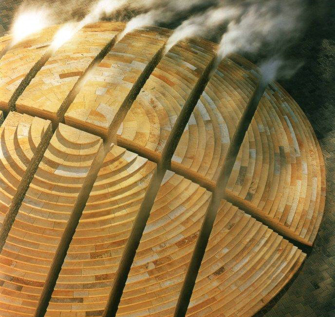 哈佛大學(xué)校園內(nèi)的唐納噴泉位于一個交叉路口,是一個由159塊巨石組成的圓形石陣,所有石塊都鑲嵌于草地之中,呈不規(guī)則排列狀。石陣的中央是一座霧噴泉,噴出的水霧彌漫在石頭上,噴泉會隨著季節(jié)和時間而變化,到了冬天則由集中供熱系統(tǒng)提供蒸汽,人們在經(jīng)過或者穿越石陣時,會有強烈的神秘感。唐納噴泉充分展示了沃克對于極簡主義手法運用的純熟。巨石陣源自他對英國遠(yuǎn)古巨石柱陣的研究,同時質(zhì)樸的巨石與周圍古典建筑風(fēng)格完全協(xié)調(diào),而圓形的布置方式則暗示著石陣與周圍環(huán)境的聯(lián)系。... 【詳細(xì)】
